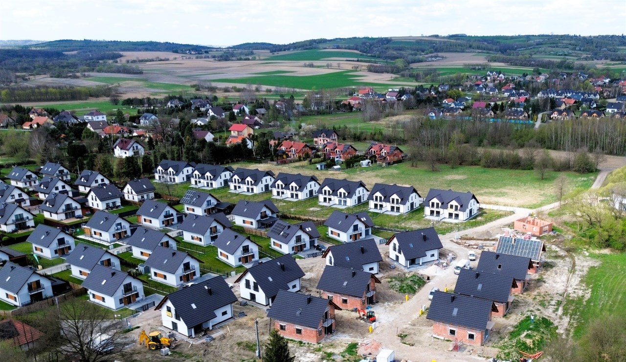 Nowe osiedle 4 domów wolnostojących w Przeginie Duchownej. Miejscowość ta położona jest zaledwie 13 km od granicy Krakowa, która łączy tradycyjną zabudowę z łatwym dostępem do miejskiej infrastruktury. Dzięki spokojnej atmosferze i bliskości natury, jest to idealne miejsce do zamieszkania.