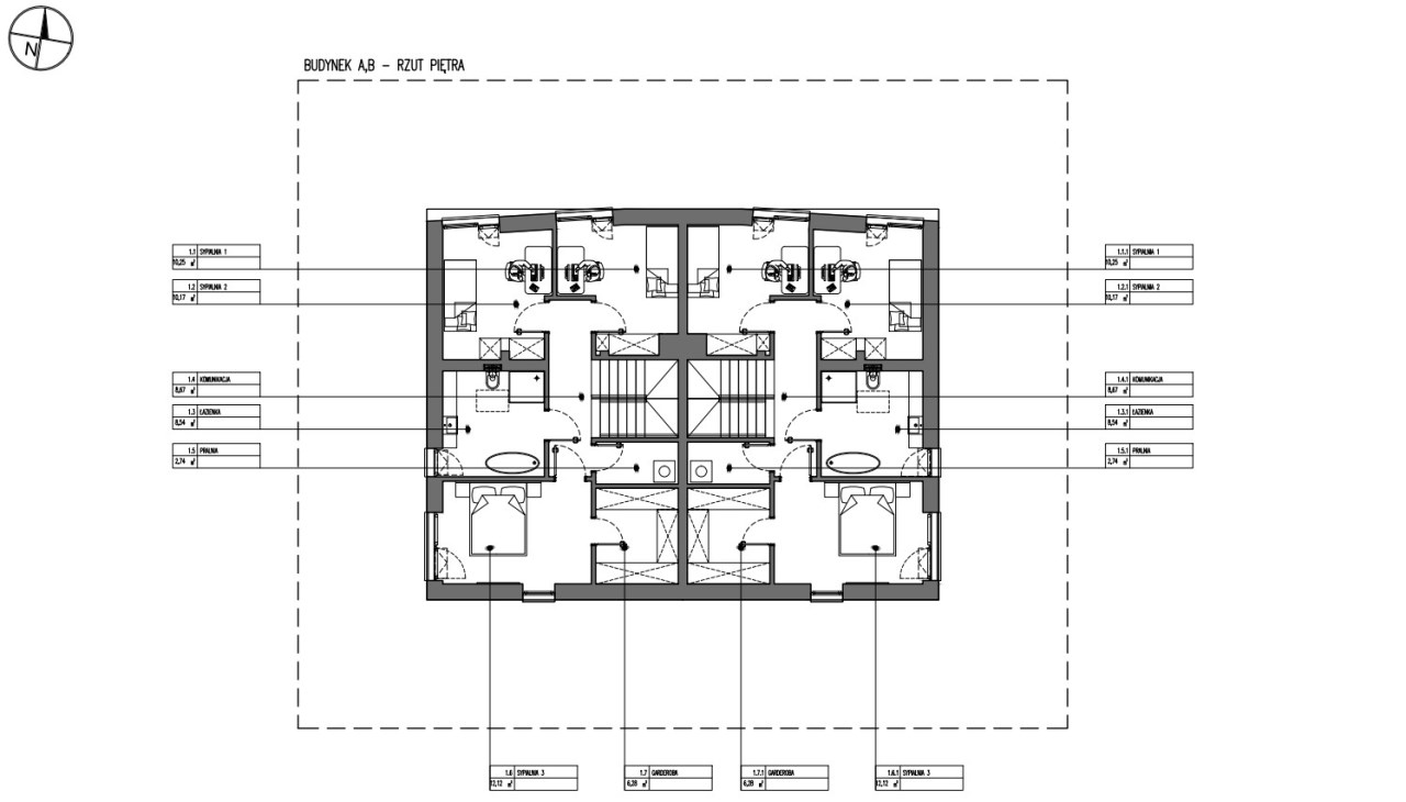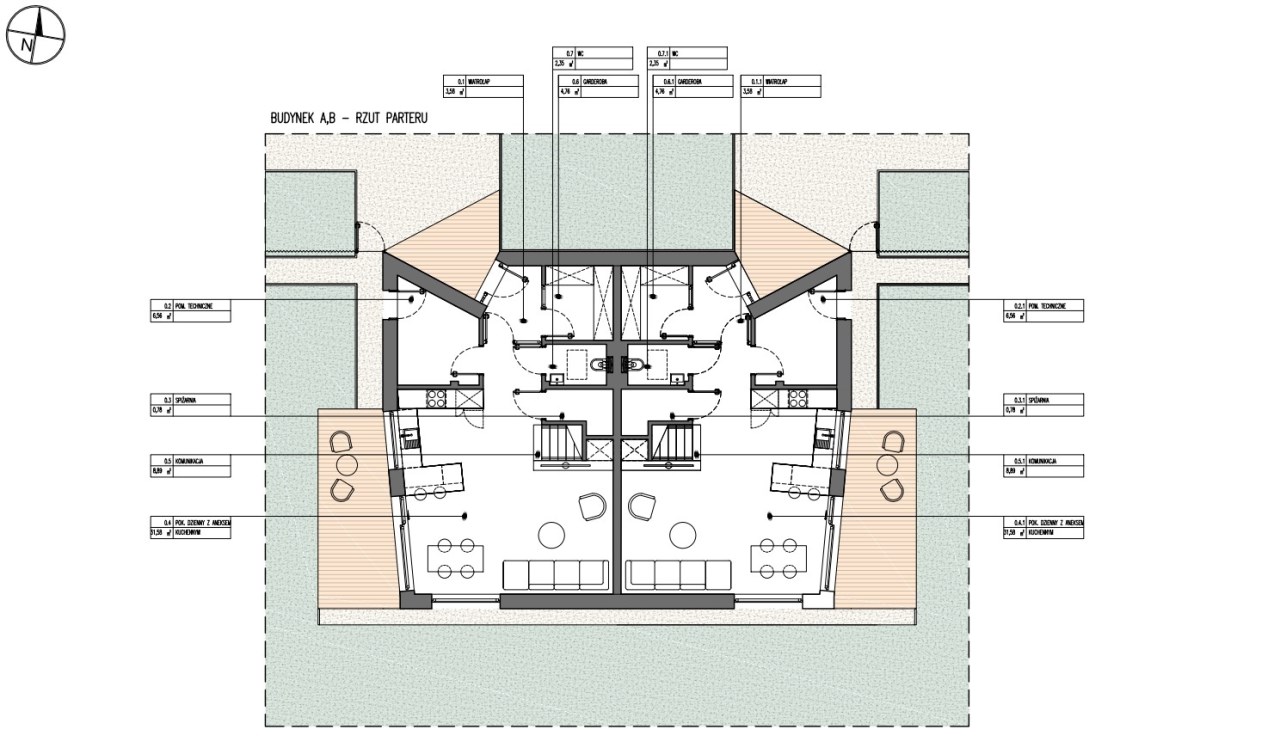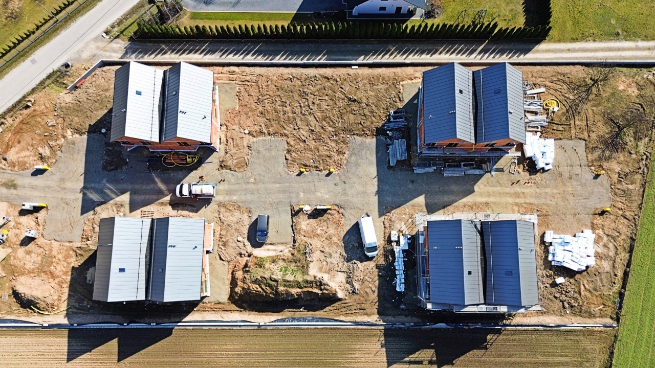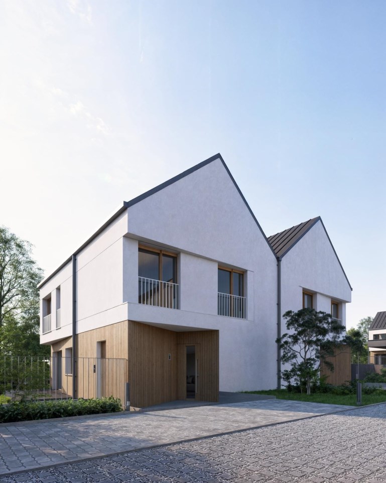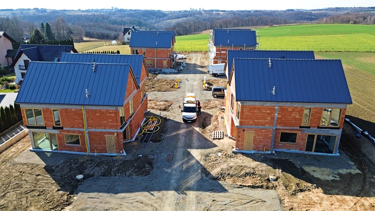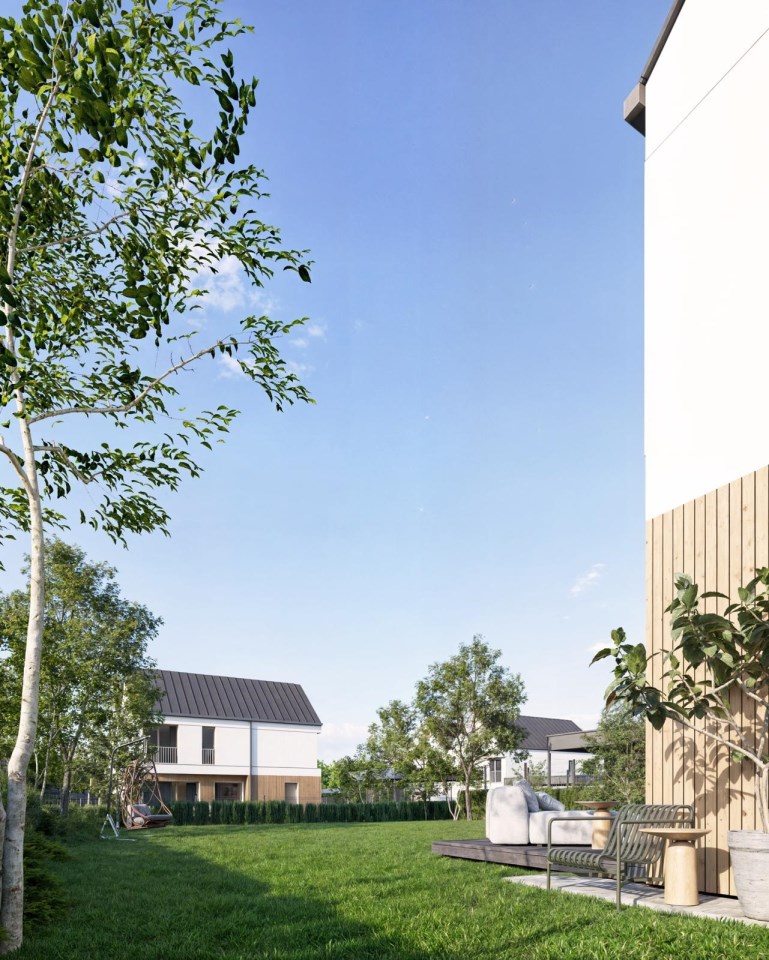 W skład inwestycji wchodzą cztery nowoczesne budynki typu bliźniak, które charakteryzują się przestronnymi, funkcjonalnymi wnętrzami oraz wysokim standardem wykończenia. Działki, na których zlokalizowane są domy, mają powierzchnię 500 m², co zapewnia odpowiednią przestrzeń do wypoczynku i relaksu na świeżym powietrzu.