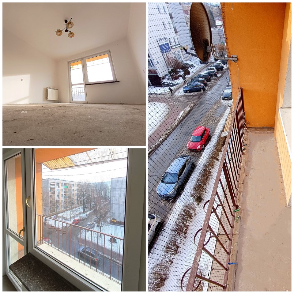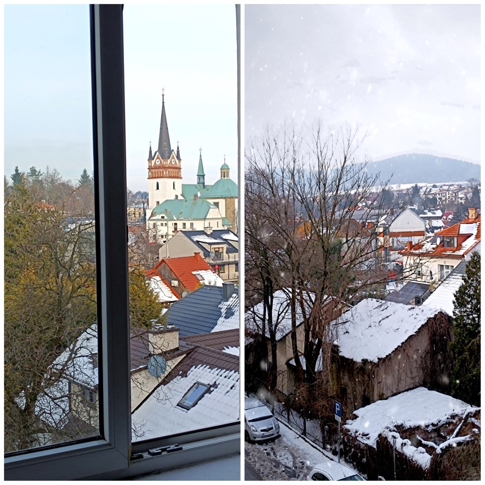 Ekspozycja południe–północ zapewnia świetne doświetlenie, a z okien rozciąga się widok na miasto, wieżę bazyliki oraz Górę Dalin. Balkon jest na tyle duży, by swobodnie ustawić stolik i krzesła, dodatkowo zabezpieczony siatką przeciw ptakom. Widoku od obu stron nic nie przysłania