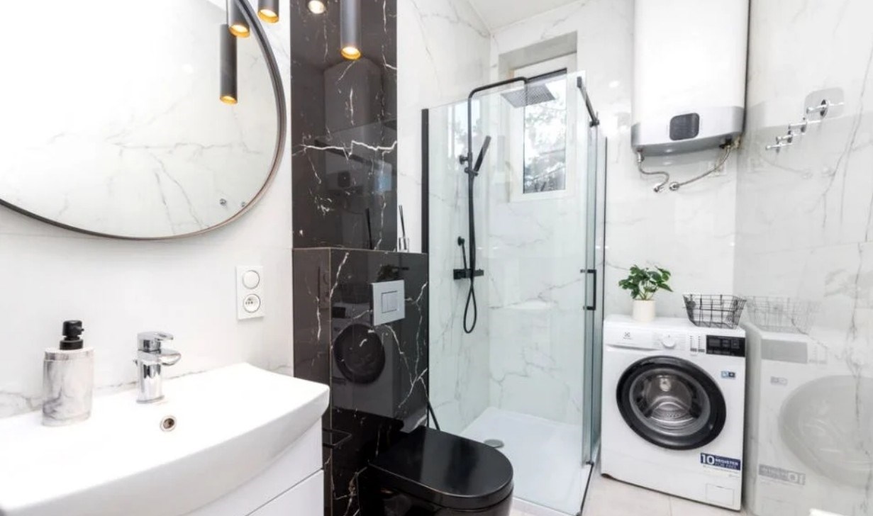 | Wyposażenie łazienki | kabina prysznicowa, lustro, pralka, umywalka, WC |