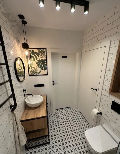 Wnętrze łączy w sobie nowoczesny design i naturalne materiały: cegłę rozbiórkową oraz beton architektoniczny, nadając przestrzeni wyjątkowego charakteru.