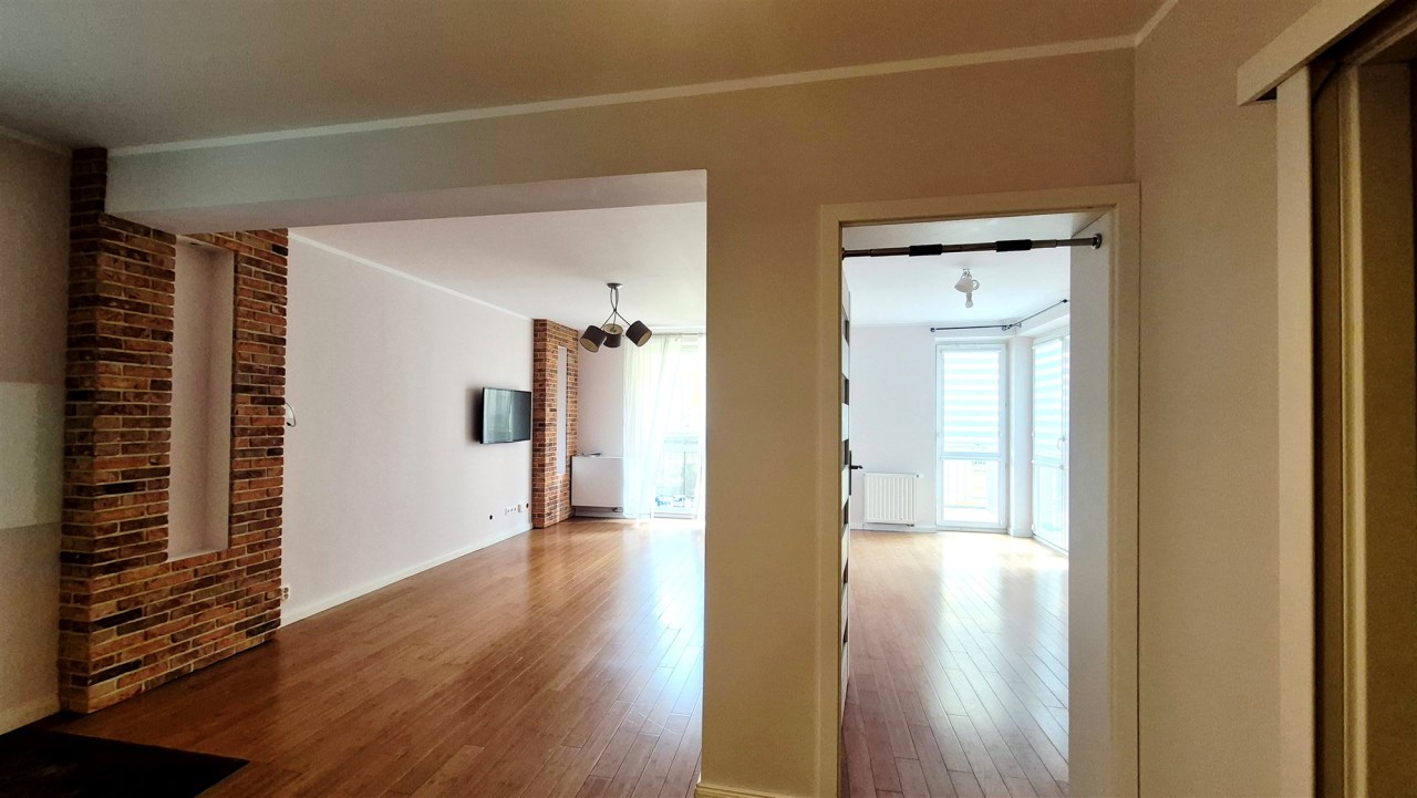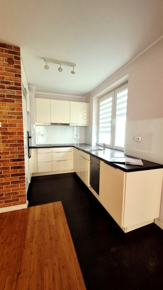 W całym mieszkaniu są drewniane podłogi - deski, w salonie dodatkowo elementy dekoracyjne z cegły naturalnej. Kuchnia zabudowana wraz z AGD (Electrolux, Bosch), garderoba umeblowana, łazienka z wc w pełni wyposażona.