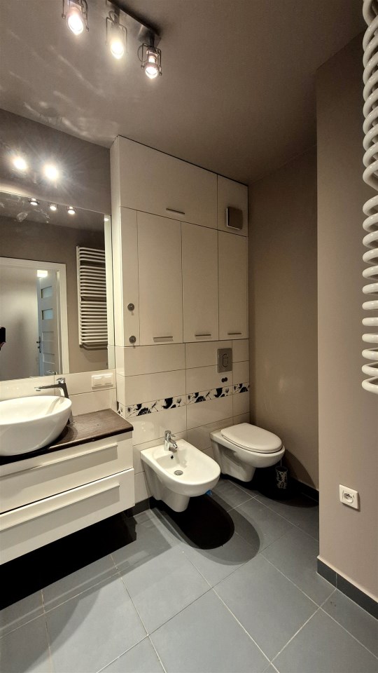 | Wyposażenie łazienki | WC, wanna, umywalka, pralka, lustro, bidet |