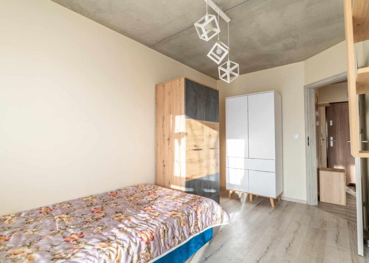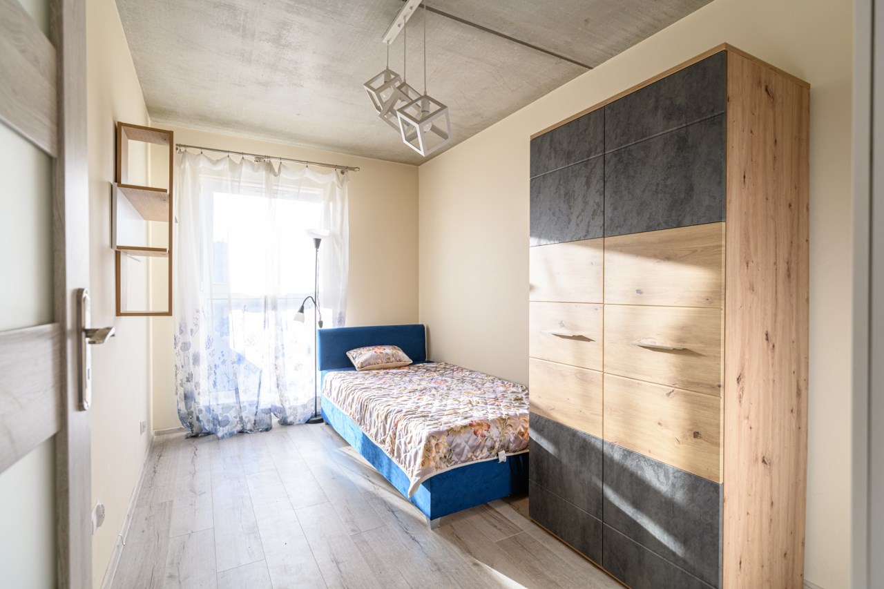 Mieszkanie składa się z 2 osobnych pokoi, jeden z nich z wyjściem na duży balkon, osobnej kuchni umeblowanej i wyposażonej w lodówkę, oraz zmywarkę, oraz łazienki z wc.