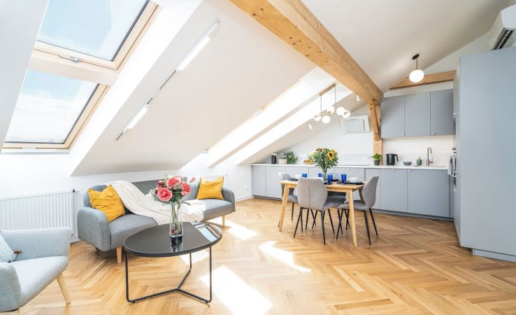 | Wyposażenie kuchni | zmywarka, płyta indukcyjna, stół, zlewozmywak z baterią, piekarnik, okap, mikrofalówka, meble kuchenne na wymiar, lodówko-zamrażarka,, krzesła |