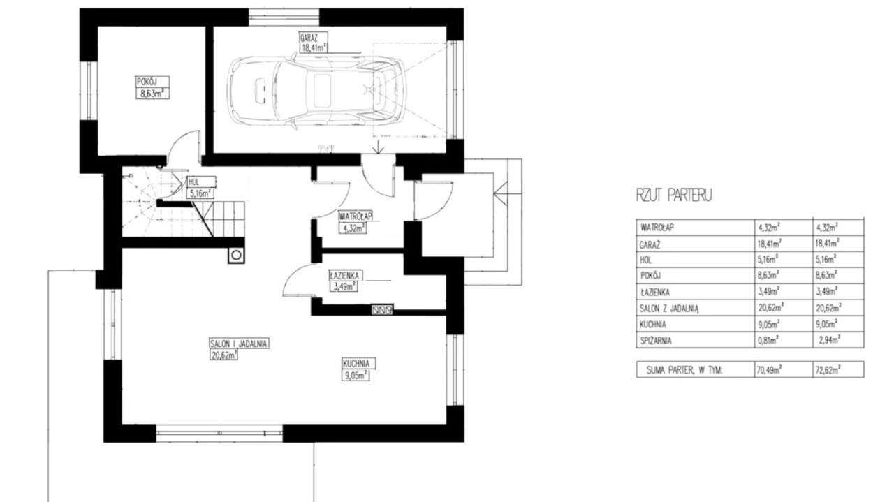 Każdy dom posiada powierzchnię użytkową 136 m², z czego 117,5 m² to część mieszkalna. Przemyślany układ pomieszczeń gwarantuje funkcjonalność i komfort codziennego życia.
