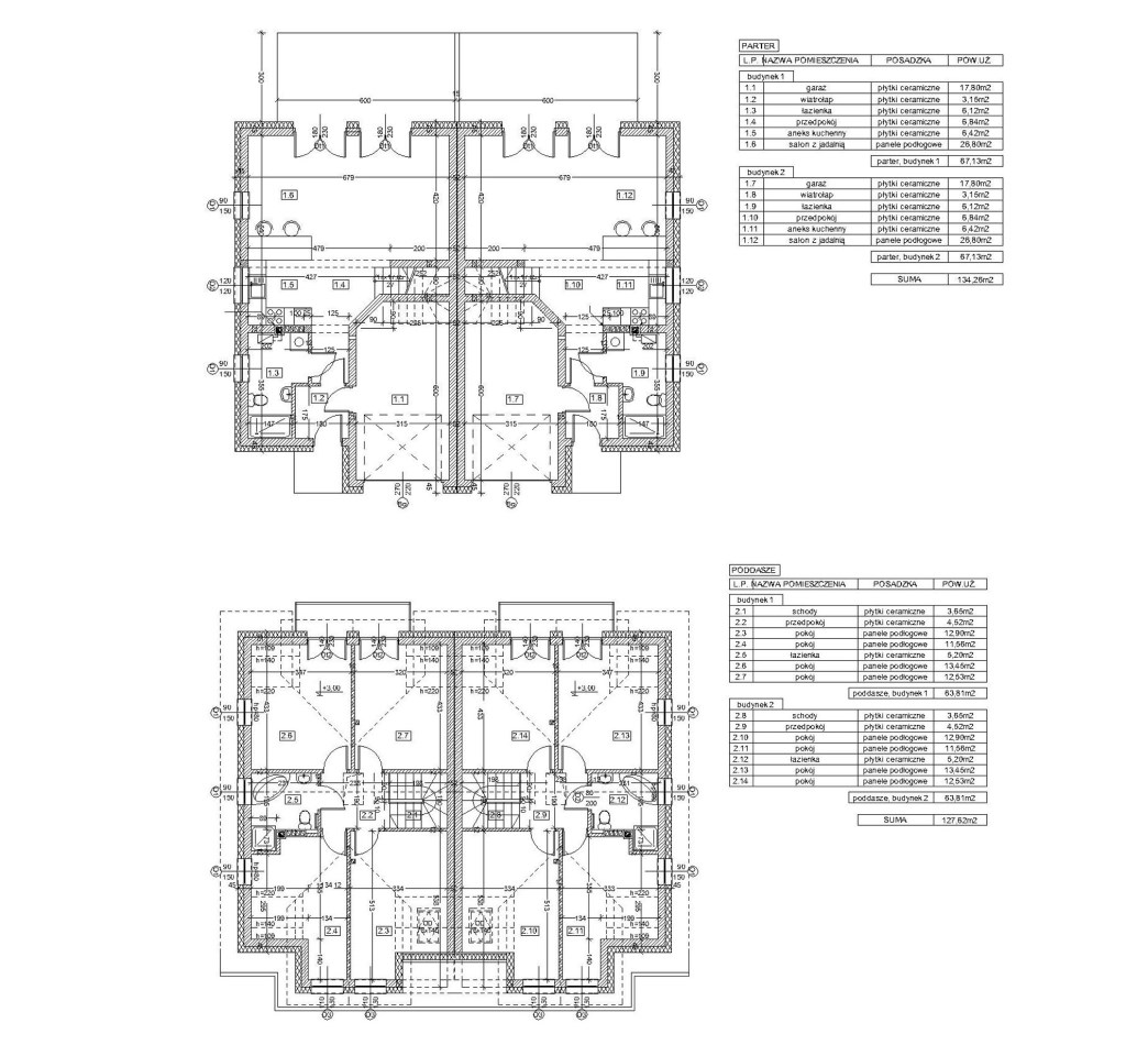 - powierzchnie działki: 441- 507m2