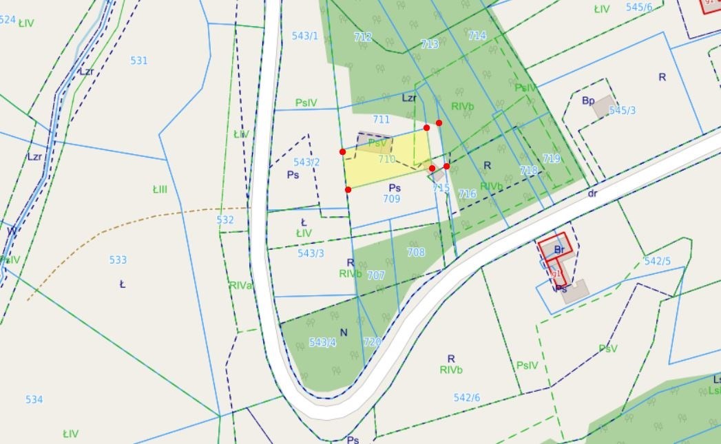 Działka idealna na zabudowę jednorodzinną, łatwa w zaaranżowaniu, ustawna. Bezpośredni dostęp do wydzielonej wewnętrznej drogi w której jest udział. Duże zalesienie okolicy, na działce piękne stare cisy, cisza i spokój a jednocześnie "rzut beretem" od szkoły, sklepu, kościoła i składu budowlanego. Działka dobrze nasłoneczniona,. Parcela leży przy drodze gminnej z kanalizacją.