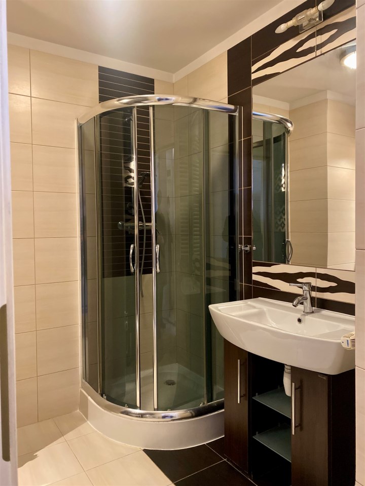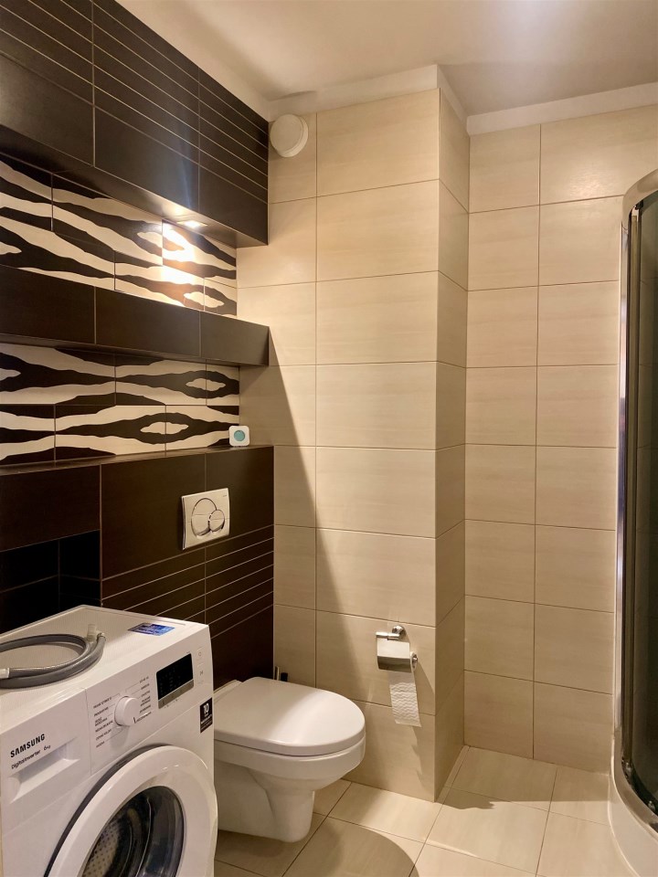| Wyposażenie łazienki | WC, umywalka, pralka, lustro, kabina prysznicowa |