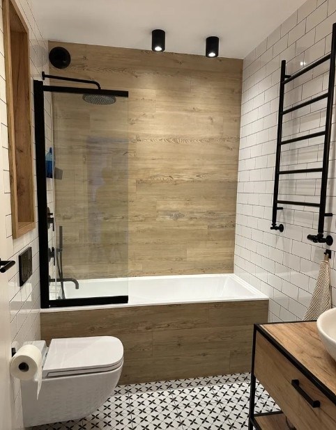 Wnętrze łączy w sobie nowoczesny design i naturalne materiały: cegłę rozbiórkową oraz beton architektoniczny, nadając przestrzeni wyjątkowego charakteru.