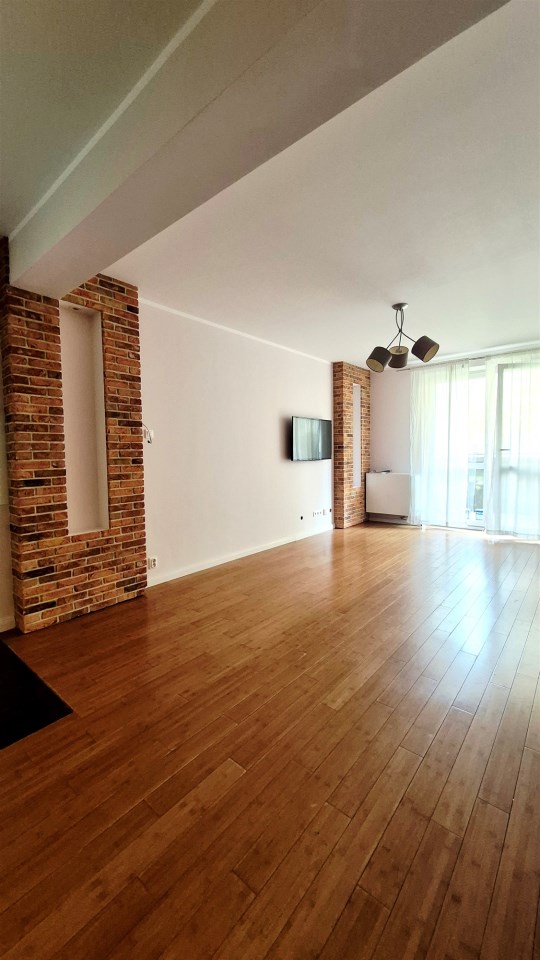 W całym mieszkaniu są drewniane podłogi - deski, w salonie dodatkowo elementy dekoracyjne z cegły naturalnej. Kuchnia zabudowana wraz z AGD (Electrolux, Bosch), garderoba umeblowana, łazienka z wc w pełni wyposażona.
