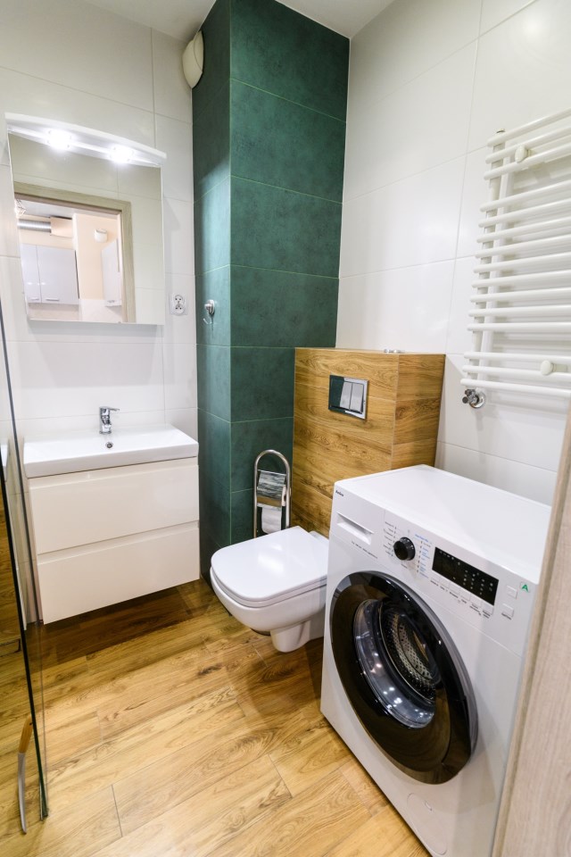 | Wyposażenie łazienki | kabina prysznicowa, natrysk, pralka, umywalka, WC |