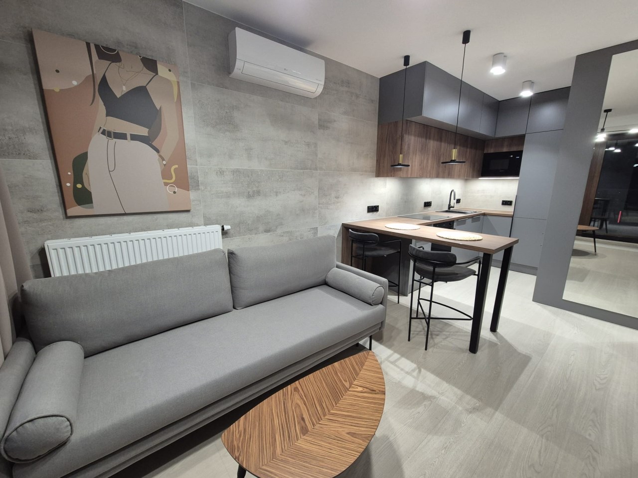 Prezentujemy do wynajęcia nowe mieszkanie, w pełni umeblowane i wyposażone, wykończone w wysokim standardzie, z dbałością o każdy szczegół.